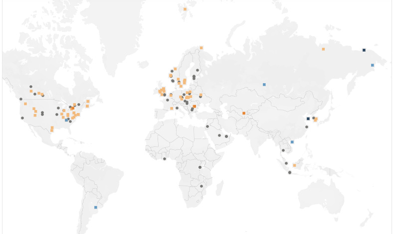 interactive map - Small Modular Reactor (SMR) Global Project Tracker in various stages of development - only 2 are operating so far - Russia and China - click here to see map and codes