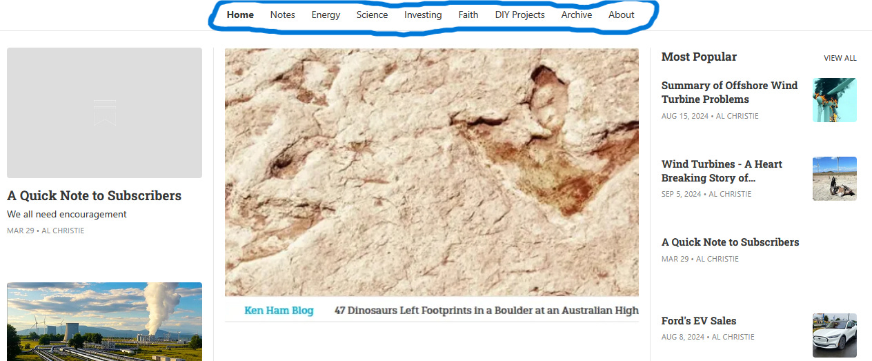If you go to just alchristie.substack.com (note there’s no “/account” on the end) you should see the same list of topics, also called sections, across the top. If you click on one of those, it will bring up just the posts in that section. That way you can find all I’ve written on that topic.